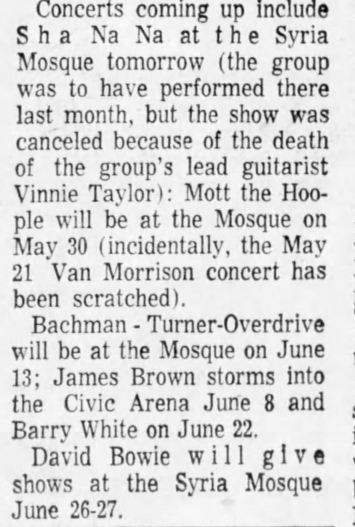 concert poster, Pittsburgh Post-Gazette 17MAY1974